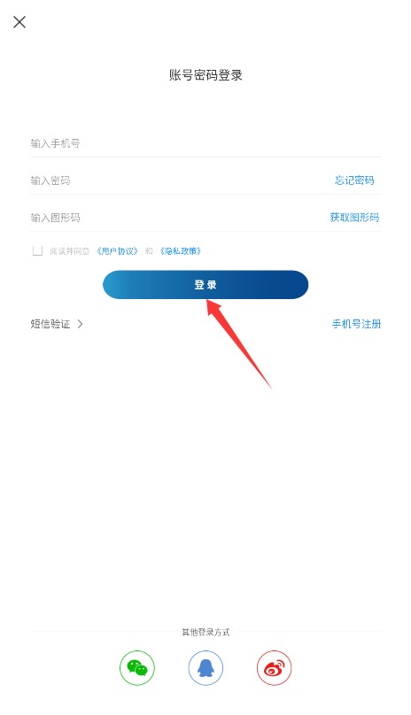 3、登录时输入手机号和密码,填写图形验证码并同意用户协议后即可成功登入系统。
