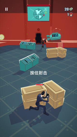 2、敌人子弹出现就能蹲下躲避,找出时机进行反击。