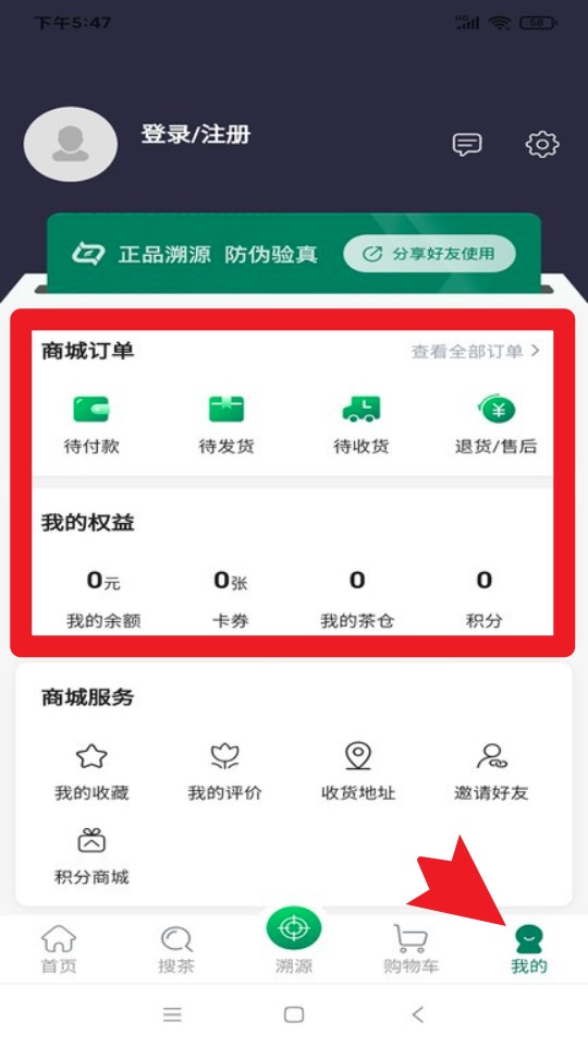 3. 在我的页面中查看订单状态、卡券积分及收货信息,一站式管理个人权益、售后服务与会员中心。