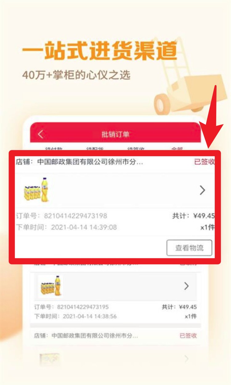1. 在批销订单页面可查看每笔采购记录,包含下单时间、订单金额与物流状态。
