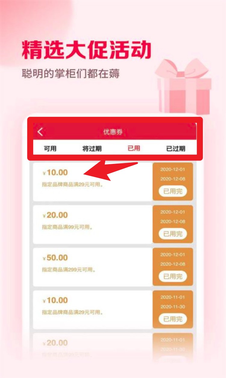 3. 进入优惠券页面查看可用、已用、即将过期的优惠券,下单前别忘先领券。