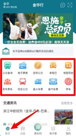 2、进入首页后可查看公交、定制公交、租车、导航等十多项便捷出行与生活服务功能。