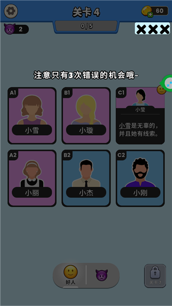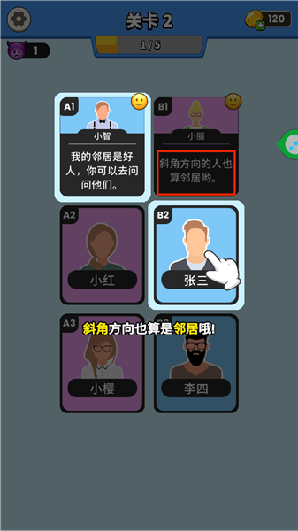2、每个关卡都会有几张卡牌是公开的,玩家通过第一张卡牌给到的信息进行推测。