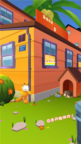 2、需向上滑动屏幕,便可控制加菲猫跑动或者跳跃。