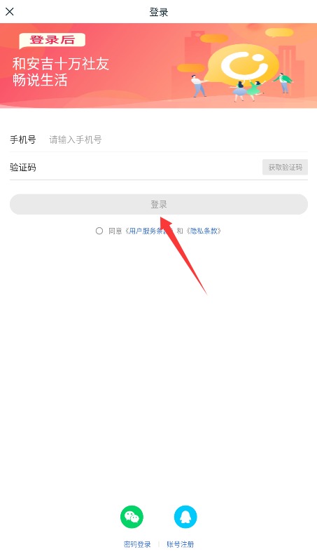 1、使用手机号接收验证码完成登录验证,勾选同意用户协议后进入应用主页面。