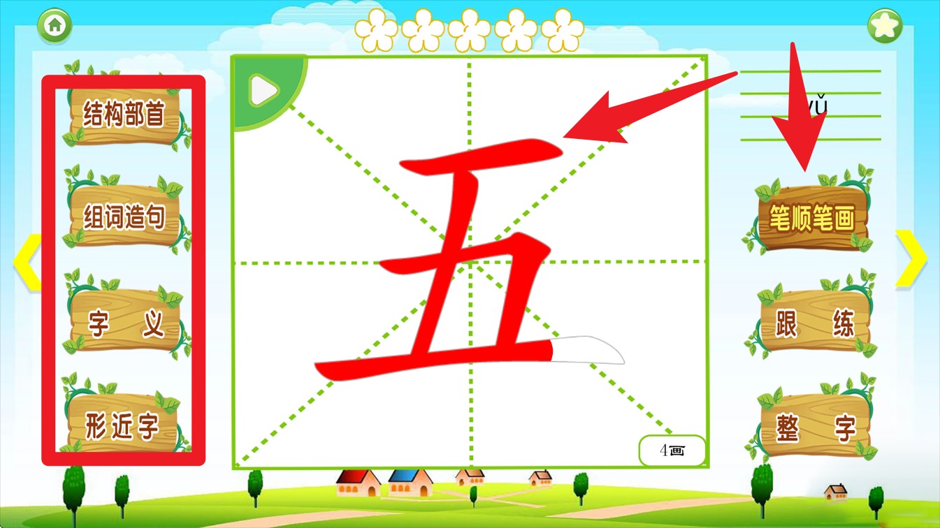 2、动态书写演示:每个汉字配备标准发音与书写动画,清晰展示正确笔顺与读音规则。