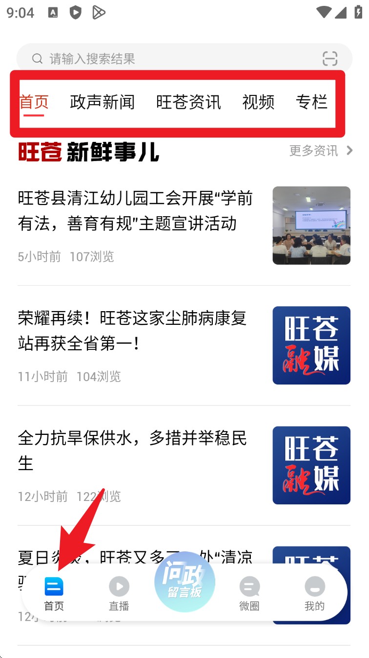 1. 进入首页可浏览各类新闻栏目,包括政声新闻、旺苍资讯、专栏等,点击任意标签可切换对应内容。