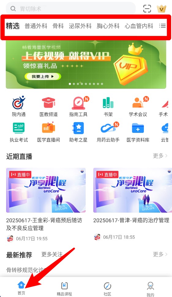 1.首页提供丰富医学视频与科室分类入口,支持搜索与快速切换内容,提升学习效率。