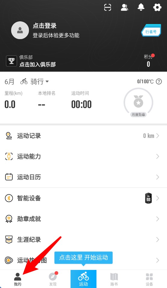 1、我的页面可查看运动记录、智能设备、勋章成就等数据,全面掌握个人骑行状况。