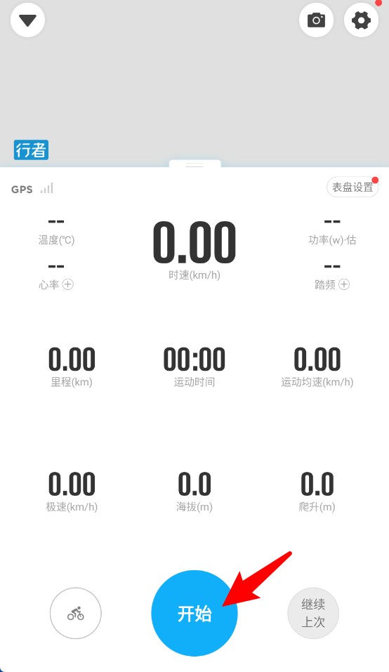 3、点击运动按钮进入骑行监测界面,支持GPS定位、速度、心率等多项数据实时显示。