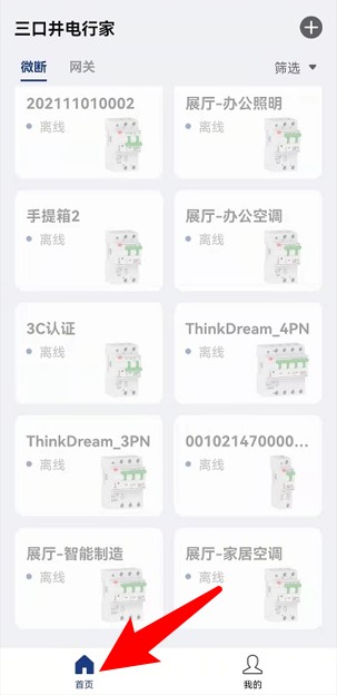 2、首页展示所有接入设备,用户可快速查看各个断路器的名称、位置与当前状态信息。