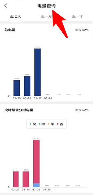 4、多维度用电分析:提供近七天、近一月、近一年的尖峰平谷用电量统计查询。
