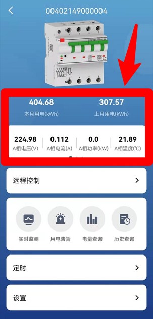 5、设备详情页展示当前及上月电量对比,并汇总电压、电流、温度等关键运行指标。