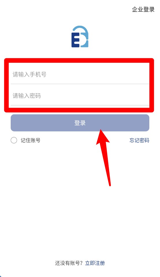 1、登录页面需输入手机号及密码完成企业身份验证,支持记住账号功能方便后续使用。