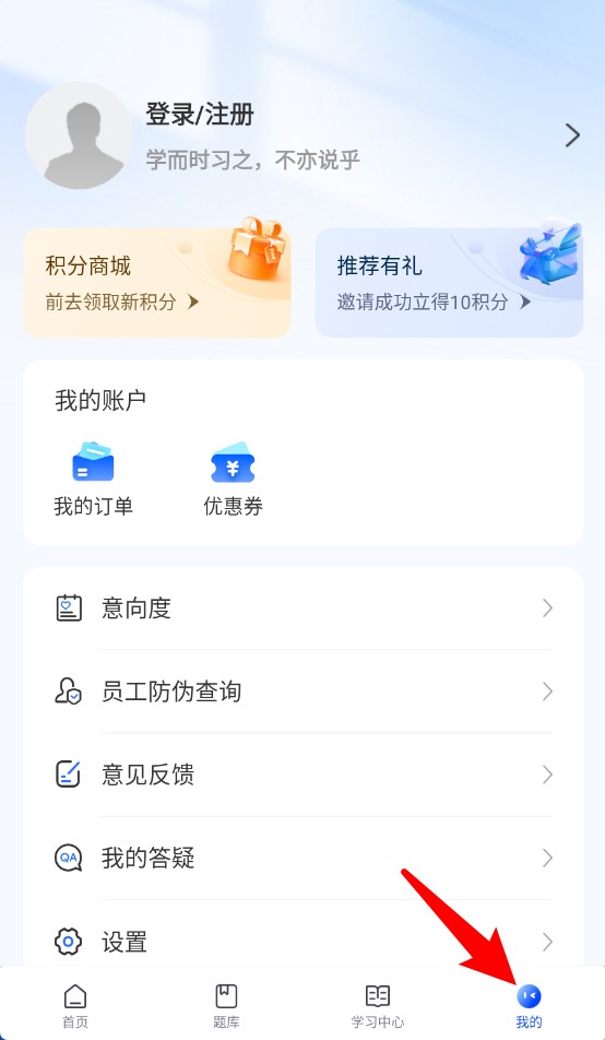 4、个人中心可查看订单、优惠券及积分任务,支持员工防伪查询、答疑反馈等功能入口。