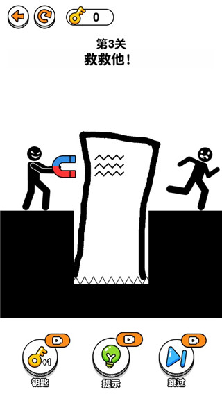 4、采用清晰细腻的画面呈现,视觉体验舒适流畅,搭载了极具特色的操作模式,简单易上手却不乏新鲜感,可通过独特的操作方式,一步步完成救援任务,将所有火柴人成功救出。