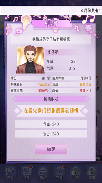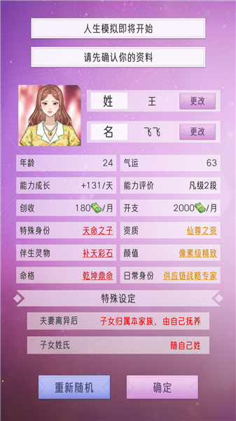 2、配备丰富的角色自定义功能,家主的性别、形象、天赋属性,均会对家族起步阶段产生深远影响。