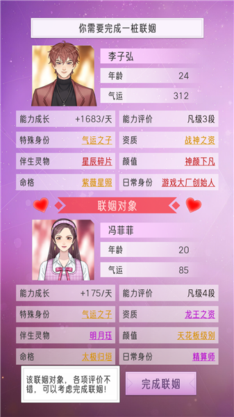 2、联姻对象同样重要,强强联合才能成为更好的家族。