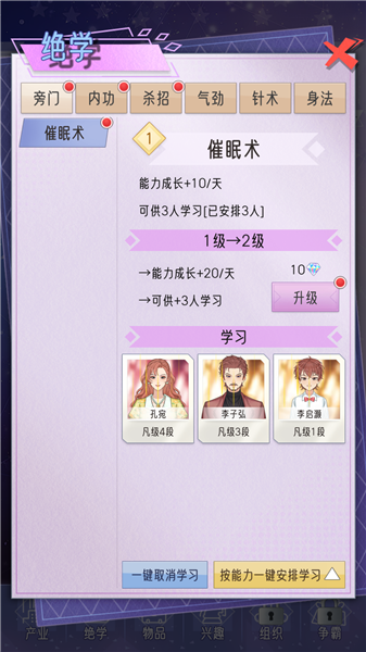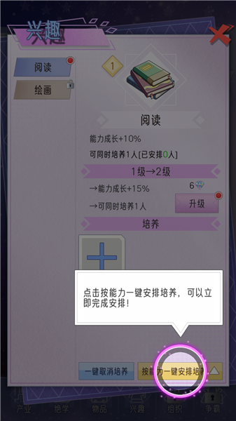 1、家族树养成高度自由,每一位后代都能顺着你的规划稳步成长,最终成为顶尖人才。