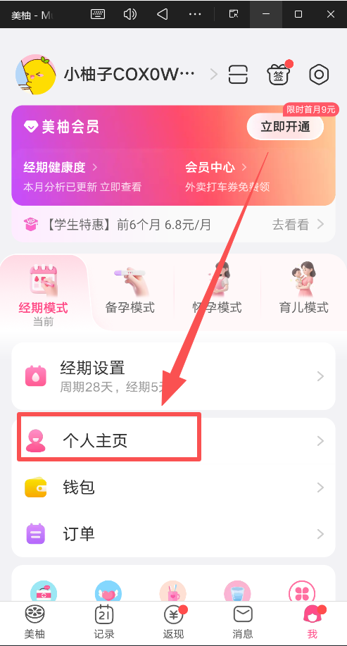 1、打开美柚APP,点击右下角的"我"进入个人中心页面;