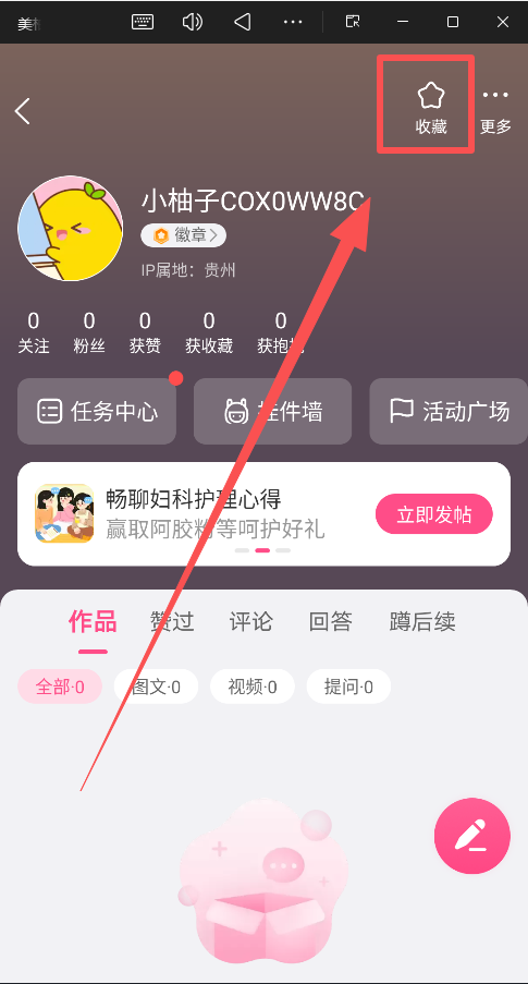2、在个人中心页面中找到并点击"收藏"选项;