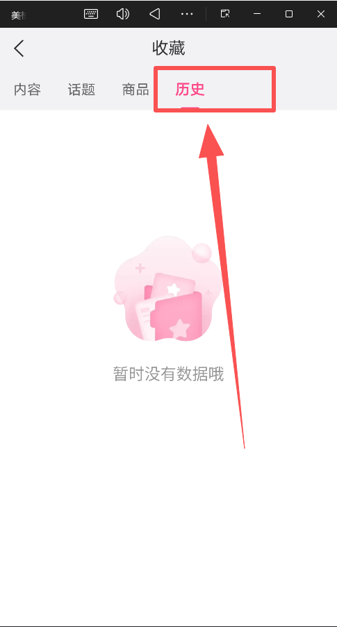3、进入收藏页面后,点击右上角的"历史"选项;