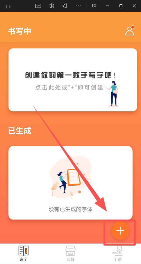 在首页点击“创建你的第一款手写字吧!”或“+”按钮。