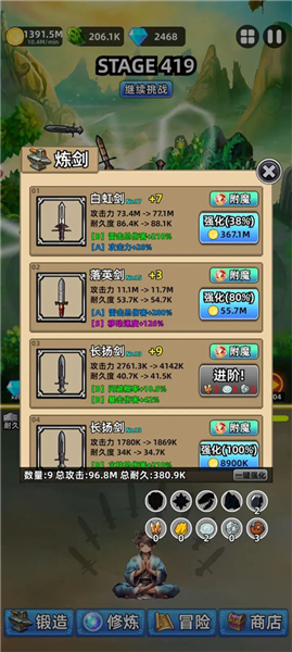 告别单一武器局限,开启从 "一柄凡铁剑" 到 "百炼神兵库" 的进阶旅程!初期锋芒初露的铜剑,后期横扫天地的至尊神剑,每一次炼剑都将解锁更强战力属性。通过不断淬炼、打磨与进阶,逐步突破战力天花板,最终化身叱咤风云的最强剑仙,书写属于你的剑道传奇!