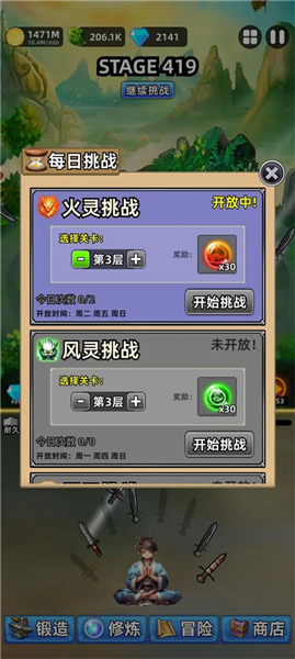 每天的固定任务简单易完成,例如每周一三五或二四六刷两次关卡,用来提升剑灵的等级,收益明显,不容错过。