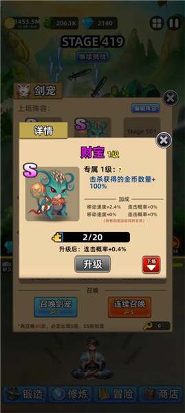 稀有SS级宠物看运气,但S级财宝宠物是提升金币获取的重要选择,有助于资源快速积累;宠物有50次保底机制,不用担心抽不到。