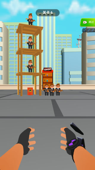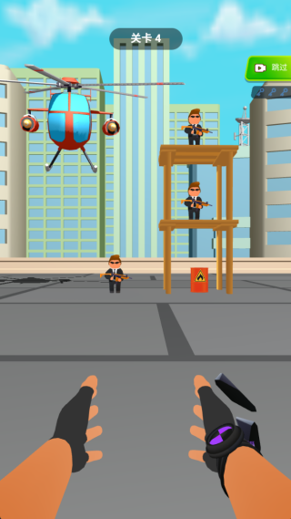 1、通过点击关卡中的敌人,利用绳索甩出进行击杀。