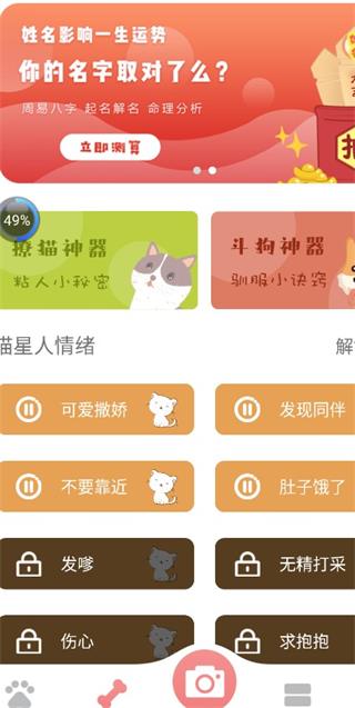 1、在手机上安装 “宠物翻译器” 工具,完成安装后打开软件,进入主界面。