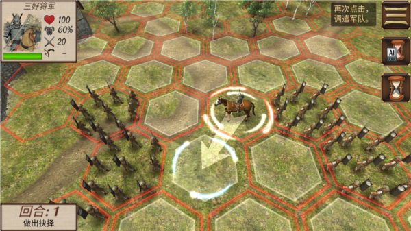 5、如果正式宣战,我们就会进入到战斗界面,每回合都可以让士兵们进行移动。