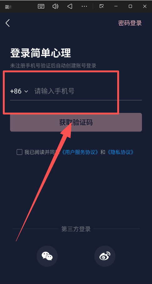 1、打开简单心理app,需要手机号注册登录。