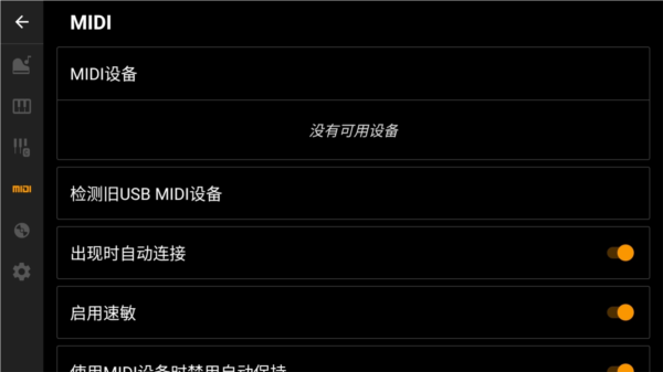 5、若有 MIDI 设备,可通过连接线与手机连接,再进入设置页面的 MIDI 设置页完成设备配置。