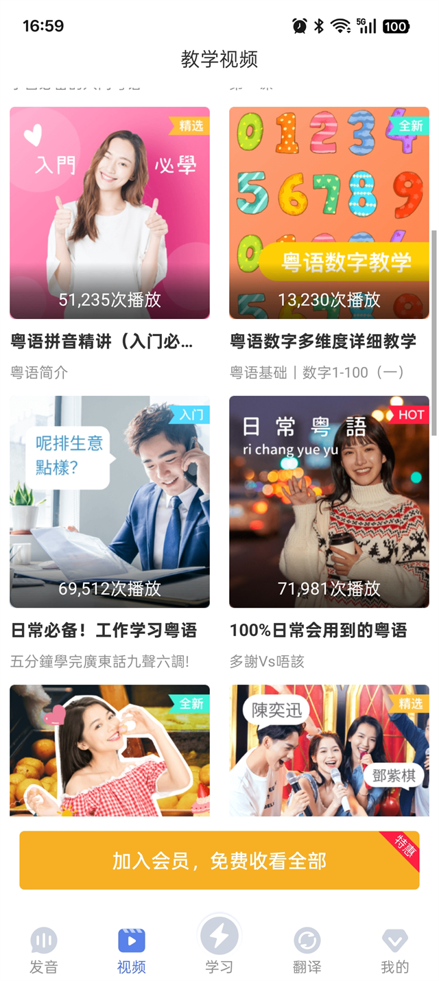 2、视频:提供更生动的视频教学内容,将复杂知识点简化,让粤语学习更简单。