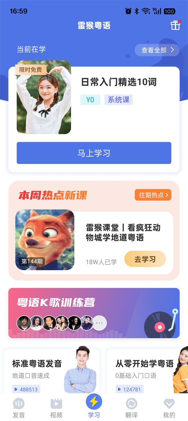 1、发音学习:即使是粤语小白,也能通过该功能轻松入门,掌握基础粤语发音。