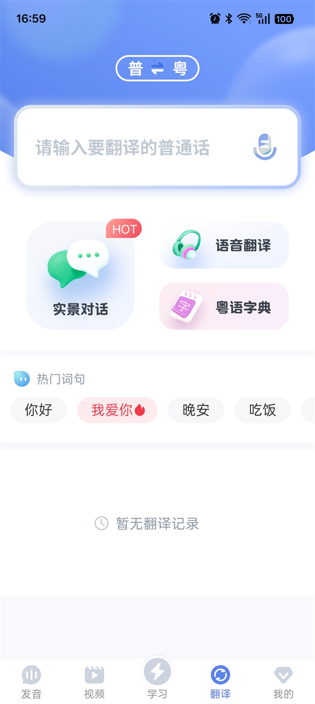 4、翻译:支持普通话一键转换为粤语,帮助用户轻松掌握日常使用的粤语词汇。