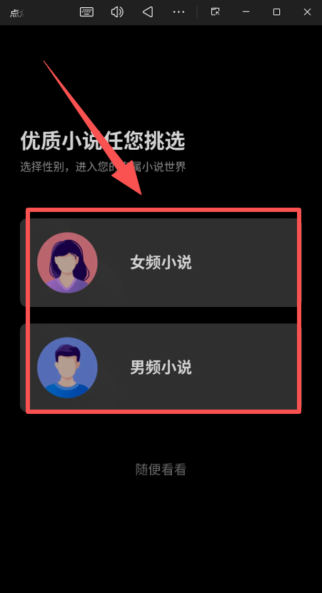 打开App,根据你的喜好选择进入 女频 或 男频 世界。