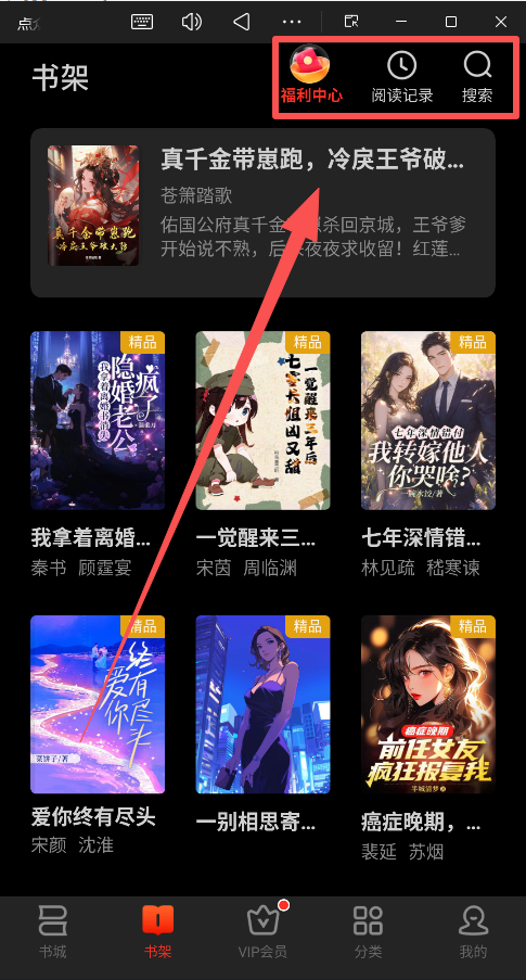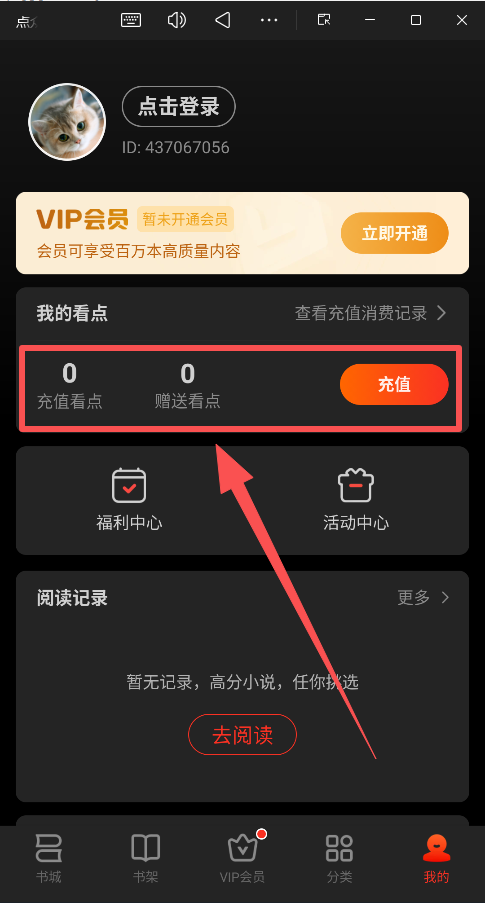 如果遇到付费章节,可以前往 我的 页面充值“看点”。如果你是 avid reader,强烈建议在 VIP会员 页面开通会员,以获得更优的阅读体验。