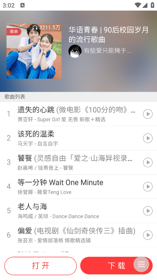 3、点击心仪歌单即可查看完整曲目列表,支持按曲风、年代等筛选,精准找到想听的歌。