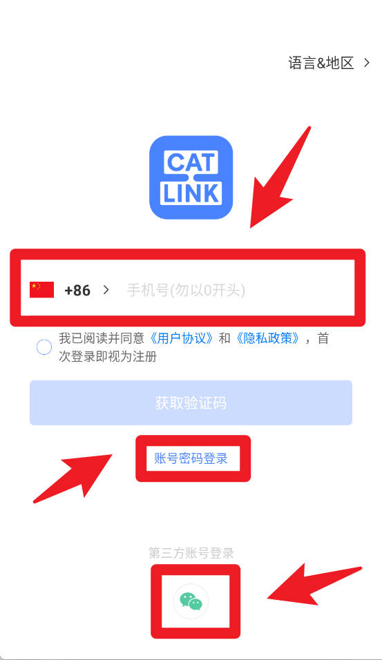 1、在登录页面输入手机号或选择第三方账号登录,阅读并同意用户协议与隐私政策后获取验证码即可完成登录。