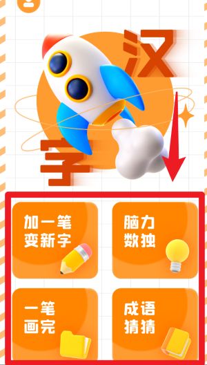 2、在首页功能区可选择加一笔变新字、脑力数独、一笔画完、成语猜猜玩法,点击对应模块进入挑战。