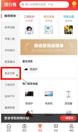 1.打开软件后,按品类筛选榜单,想查辣条品牌就选择食品生鲜分类,操作简单易上手。