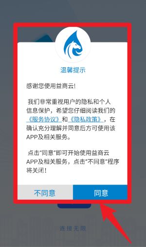 1、首次进入应用时,阅读并确认《服务协议》,点击同意按钮即可继续使用APP及相关服务。