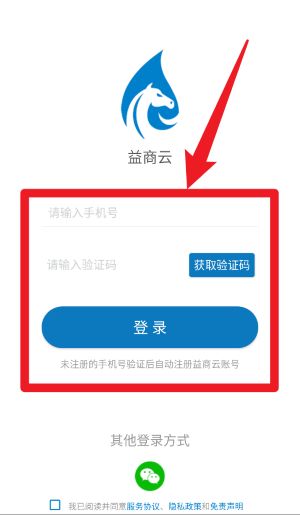 2、在登录页面输入注册手机号并获取验证码,填写验证码后点击登录,未注册手机号将自动完成注册绑定。