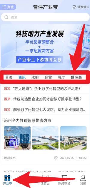 3、进入产业带页面,可浏览首页、资讯、求购、现货、展厅及供应商等板块内容,获取行业信息与商机。