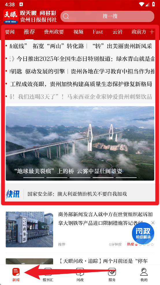 2、登录成功后进入首页,可在新闻板块浏览最新的时政要闻、本地资讯,点击任意新闻可查看详细内容。