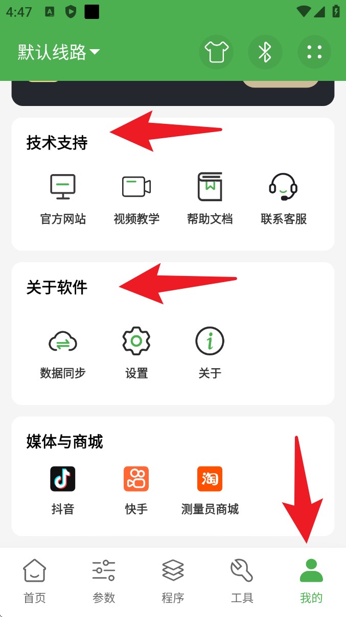 5. 在我的页面可找到技术支持入口,如官网、视频教学、帮助文档等,同时支持同步数据和查看软件信息。