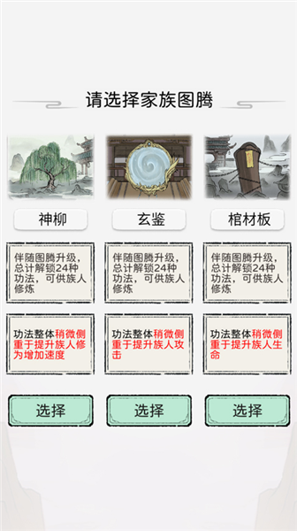 3、然后选择家族图腾,现有神柳、玄鉴、棺材板三种可以选择;